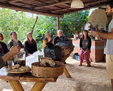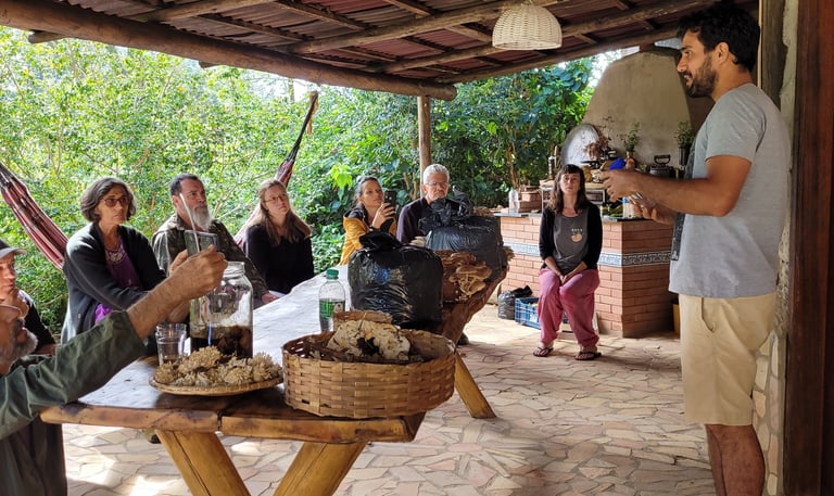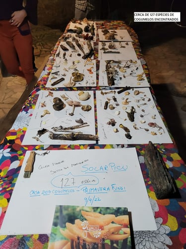 Realização de atividades educativas que valorizam conhecimentos tradicionais e científicos para a sustentabilidade, e tecnologia social Teia da Vida, certificada pela FBBr e UNESCO, com vivências de identificação de cogumelos silvestres com Prof. Jeferson Timm da Primavera Fungi e Casa de Cogumelos de Gonçalves, encontro da Orgânicos Sul de Minas - OSM